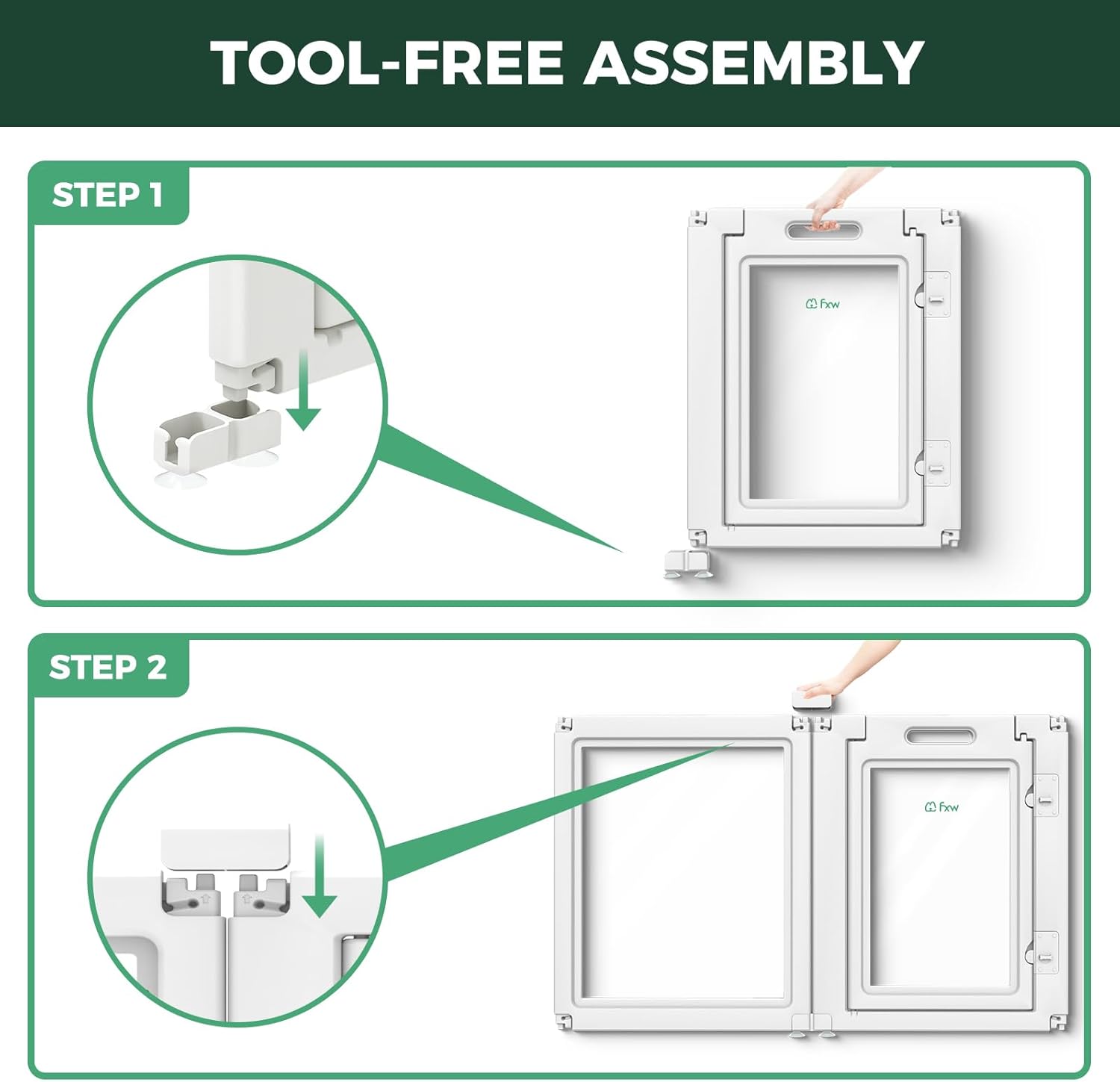 - Tool-Free, Customizable Assembly: No tools required—simply snap the panels together to create the perfect play area or barrier, with flexibility to adapt to any space.