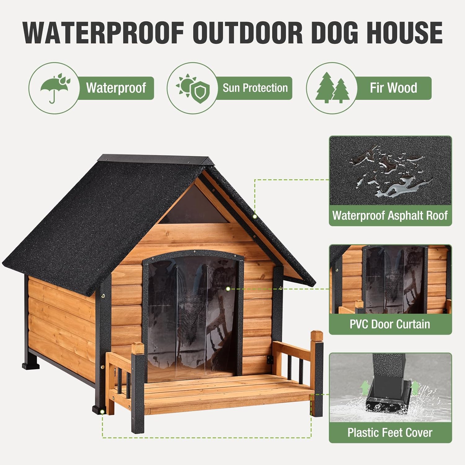 - Waterproof and Sun Protection Design: This outdoor dog house features a high-quality waterproof asphalt roof, effectively preventing rainwater penetration while providing excellent sun protection. Whether it's rainy or sunny, your beloved pet can rest comfortably in a cozy environment.