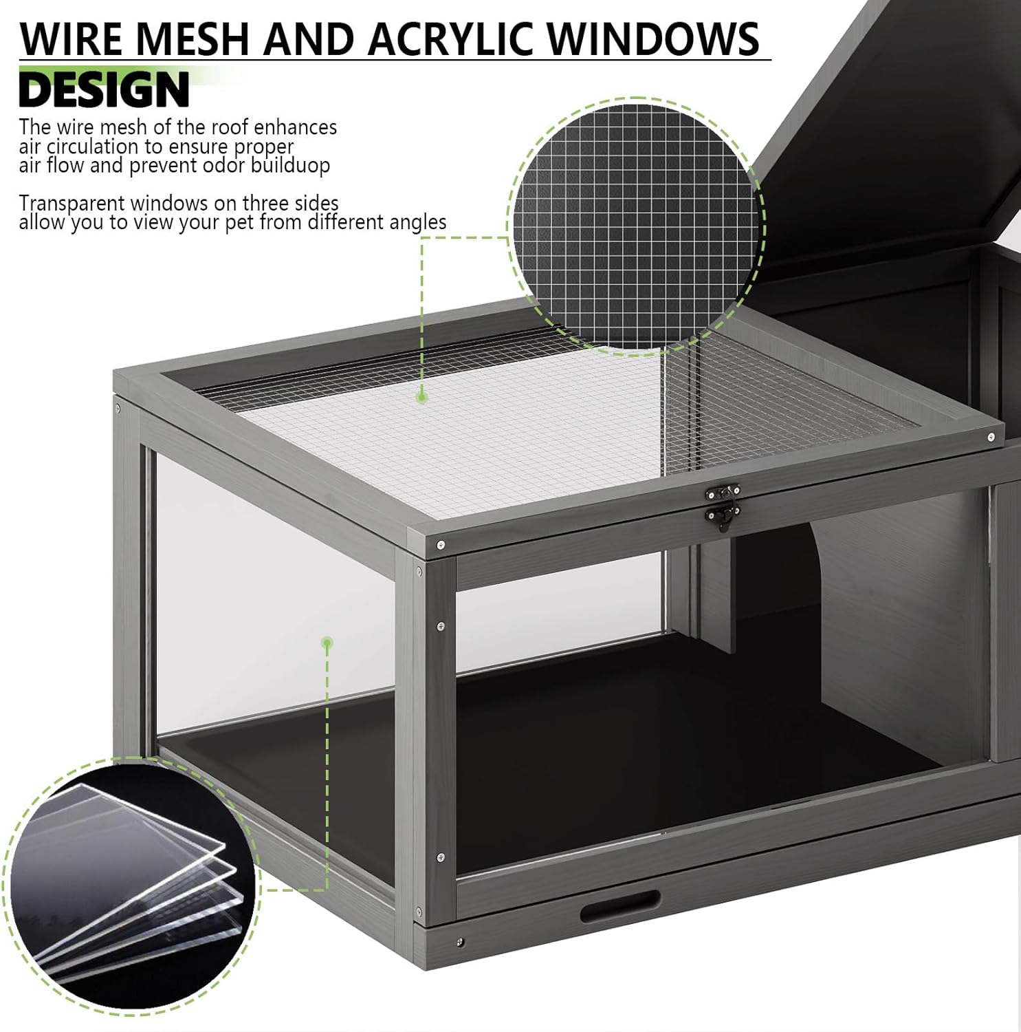 - â¨ăInnovative Dual Chamber Layoută: The tortoise enclosure includes a public area with three large observation windows for easy monitoring and exposure to UV light, while the private resting area protects your pet from the elements, ensuring a comfortable retreat