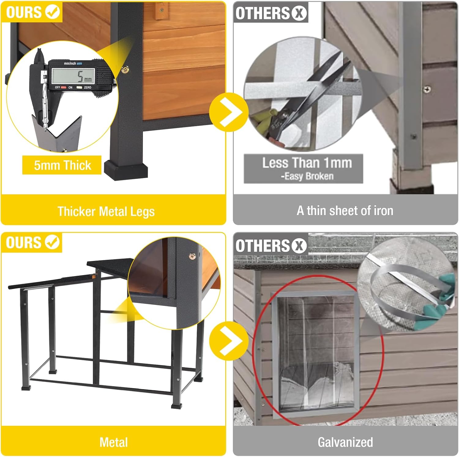 - 【Waterproof & Easy-Clean Hinged Roof】The roof features smooth-opening hinges and a waterproof coating, making cleaning effortless while keeping your dog dry in all weather conditions