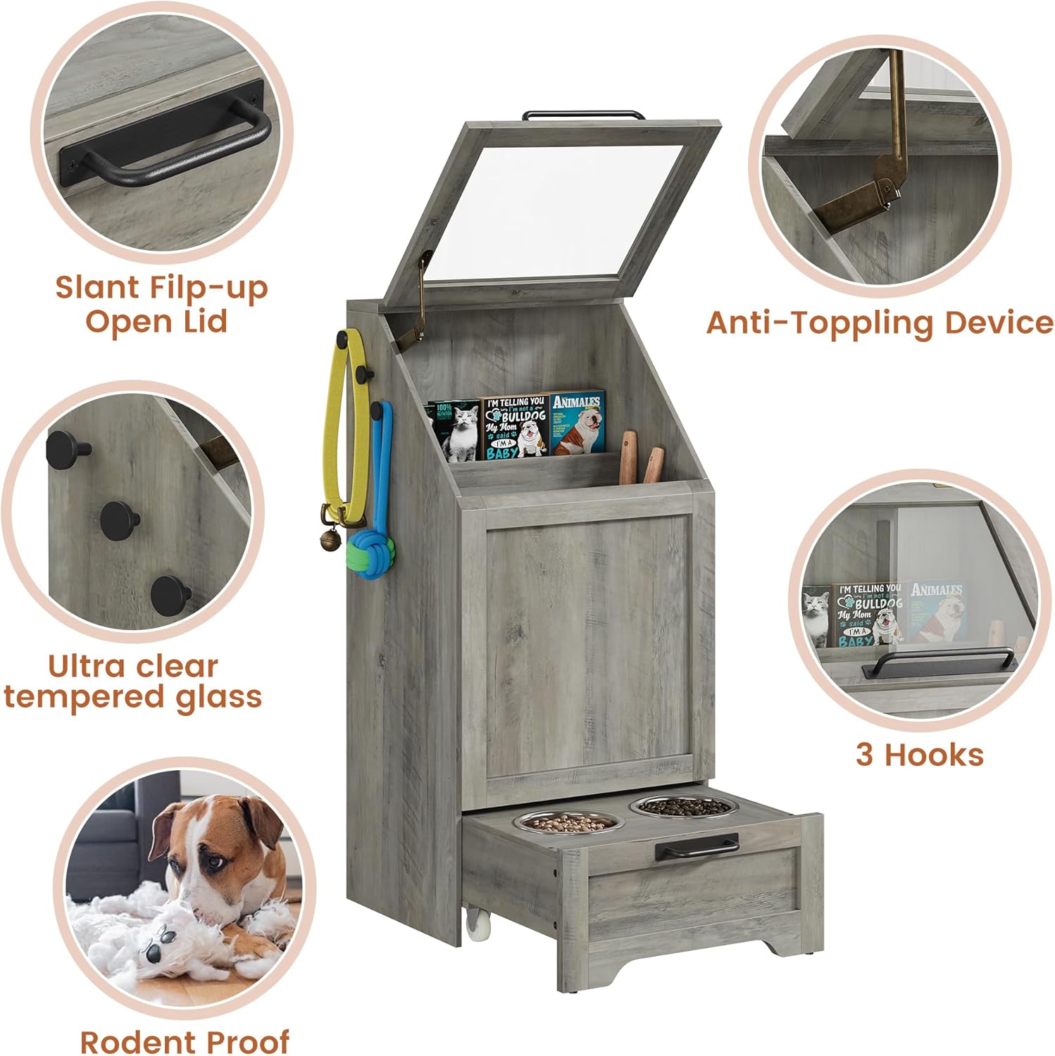 - Flip-Type Food Storage Cabinet: Equipped with a high-definition glass flip cover that lets you easily check food levels while keeping dust out, ensuring your petโs food stays fresh and clean.